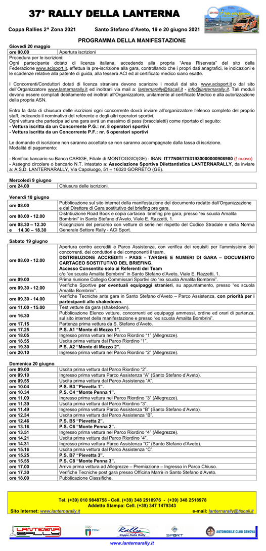 37° Rally della lanterna - 5° Rally della Val d'Aveto