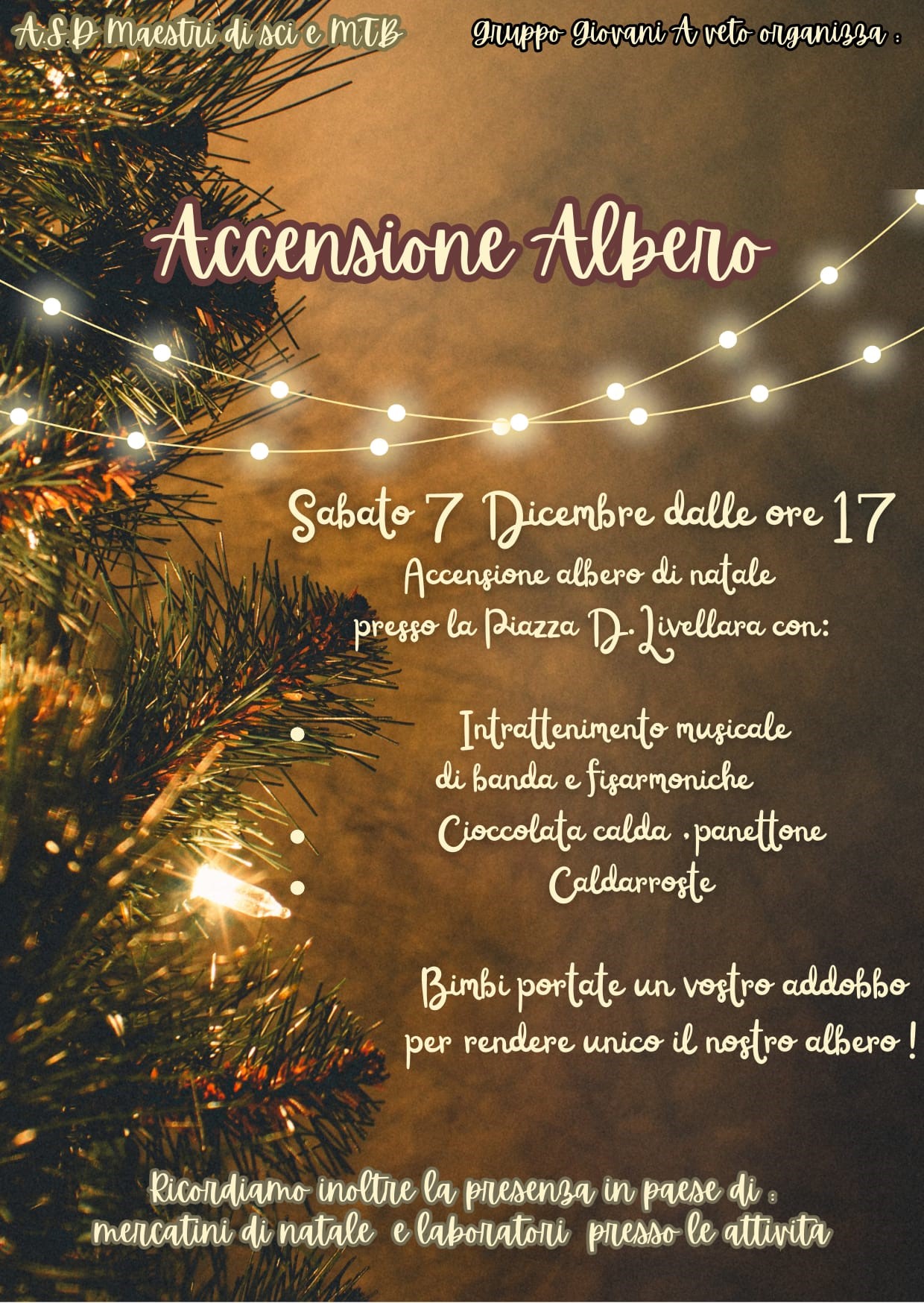sabato 7 dicembre dalle per 17.00 accensione albero di Natale presso piazza Livellara.
