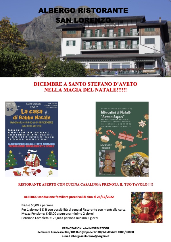 ALBERGO SAN LORENZO - Dicembre a S. Stefano d'Aveto nella Magia del natale!!!!