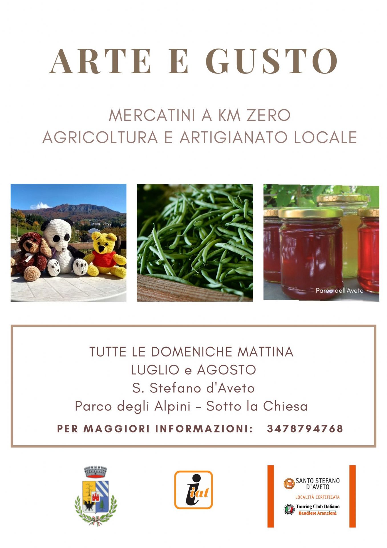 Da domenica 2 luglio e per tutte le domeniche mattina di luglio e agosto, nella splendida cornice del Parco degli Alpini, troverete i mercatini Arte e gusto. Aziende agricole e hobbisti esporranno i loro prodotti di agricoltura e artigianato locale a km 0