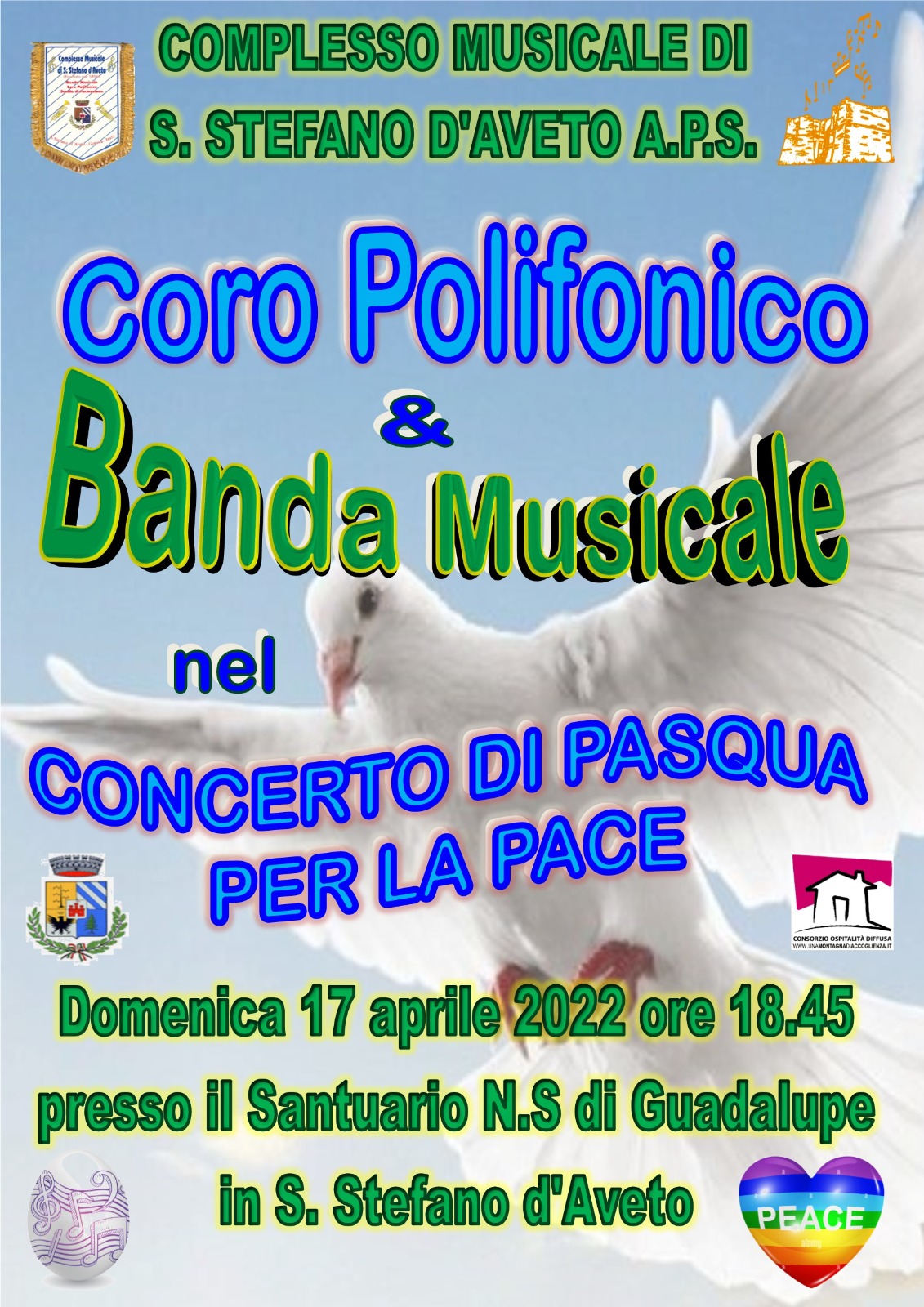 Domenica 17 aprile ore 18.45 presso il Santuario di Ns di Guadalupe la banda musicale e il coro polifonico, dopo due anni di stop tornano ad esibirsi in occasione della Pasqua, dedicando il concerto alla pace, saranno diretti da Davide Pedrazzi