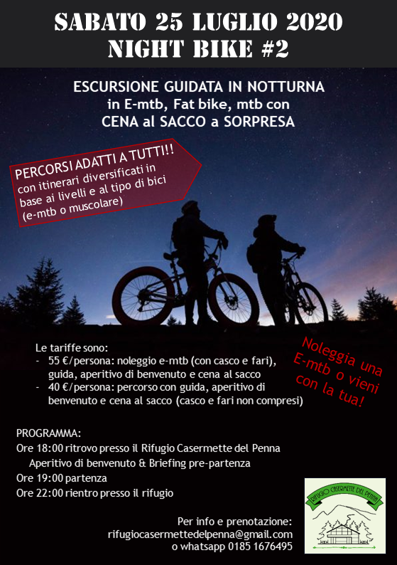 Escursione Guidata in notturna in E-mtb, Fat bike, MTB con Cena al Sacco a Sorpresa