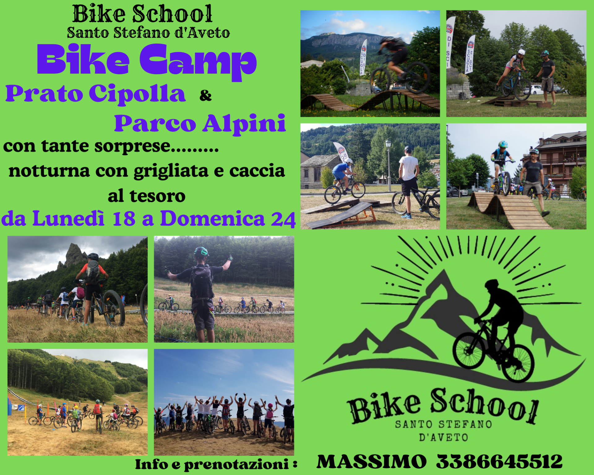 Bike school e bike camp al Prato della Cipolla e al Parco degli Alpini con tante sorprese.... notturna con grigliata e caccia al tesoro