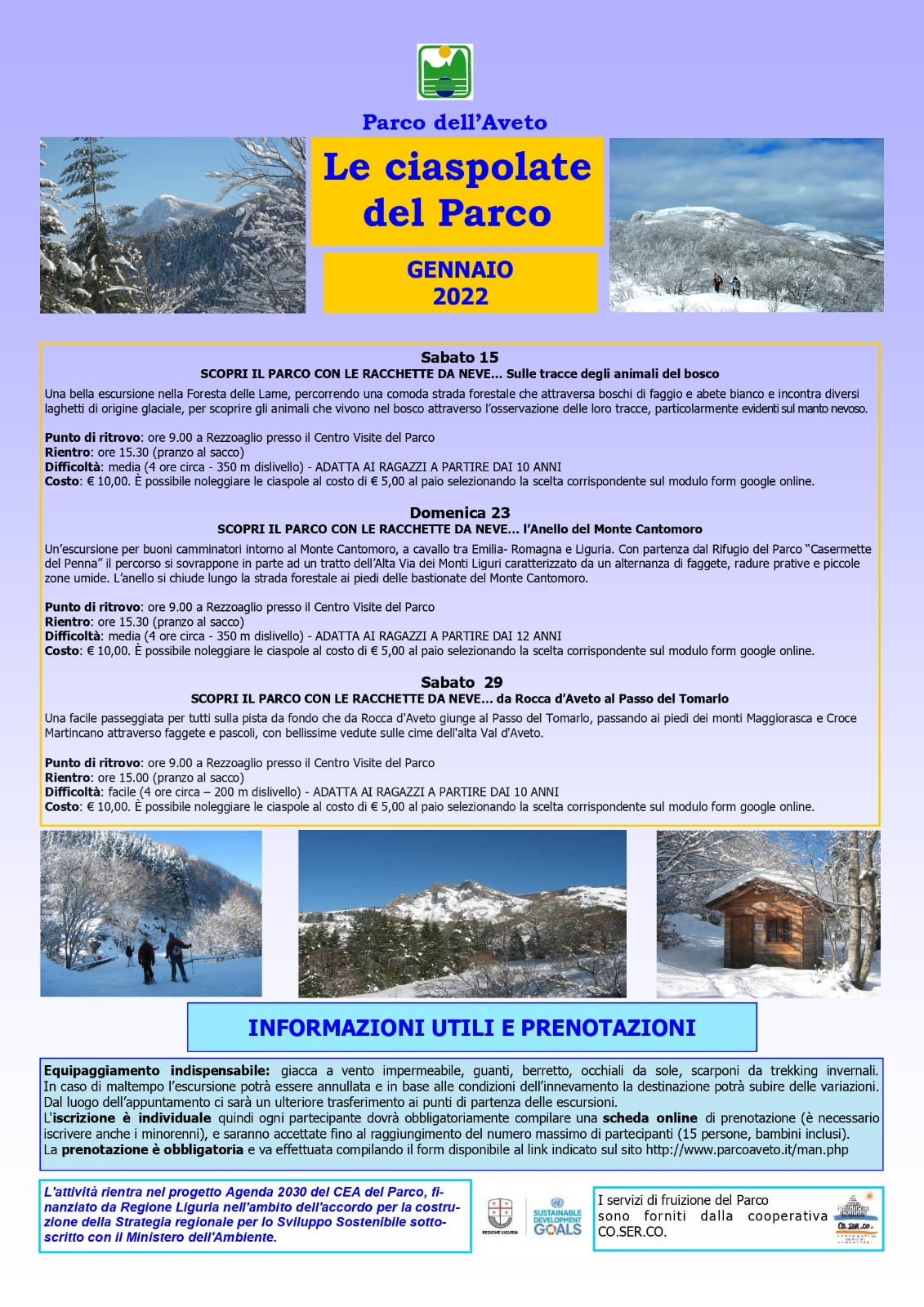 Calendario Ciaspolate Parco Aveto Gennaio 2022