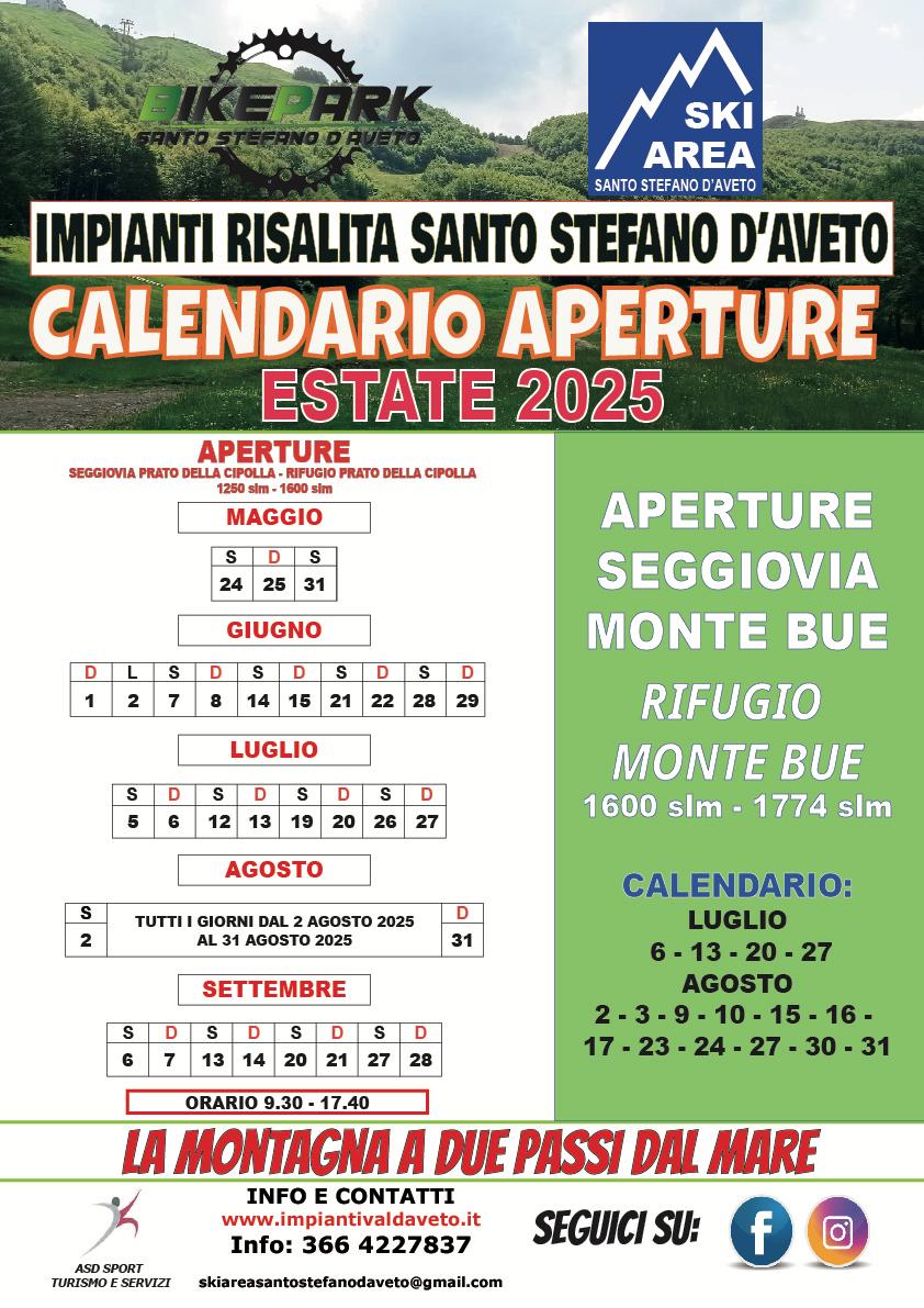 E' disponibile il calendario delle aperture degli impianti di risalita e dei Rifugi del Prato della Cipolla e del Monte Bue