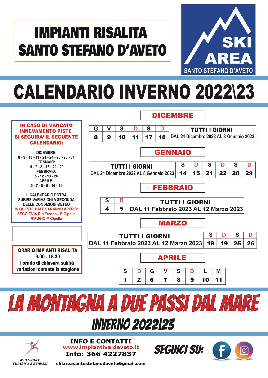 CALENDARIO IMPIANTI DI RISALITA SKI AREA SAN STE