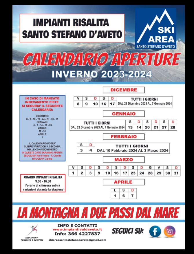 Calendario impianti Val d'Aveto