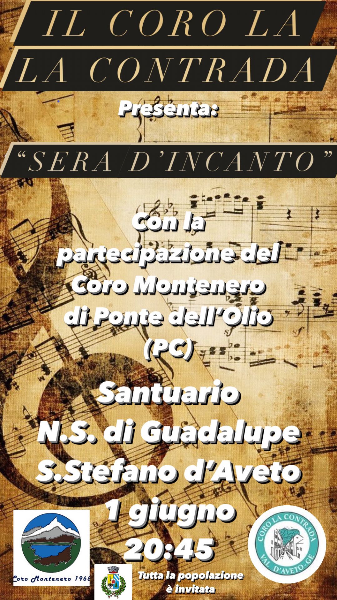 sabato 1 giugno presso il Santuario di N.S di Guadalupe Santo Stefano d'Aveto concerto del Coro la Contrada alle ore 20.45