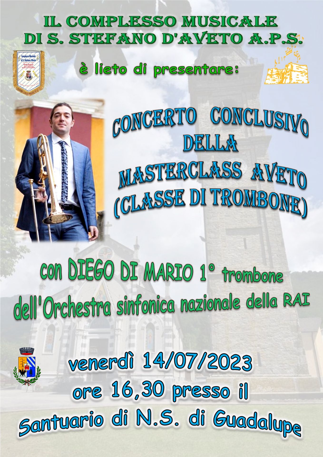 Gli allievi e il M° Diego Di Mario, 1° Trombone dell'Orchestra Sinfonica nazionale della RAI,S sono lieti di presentarvi il concerto conclusivo della Masterclass di Trombone che sarà venerdì 14 luglio presso il Santuario di NS di Guadalupe alle 16.30!