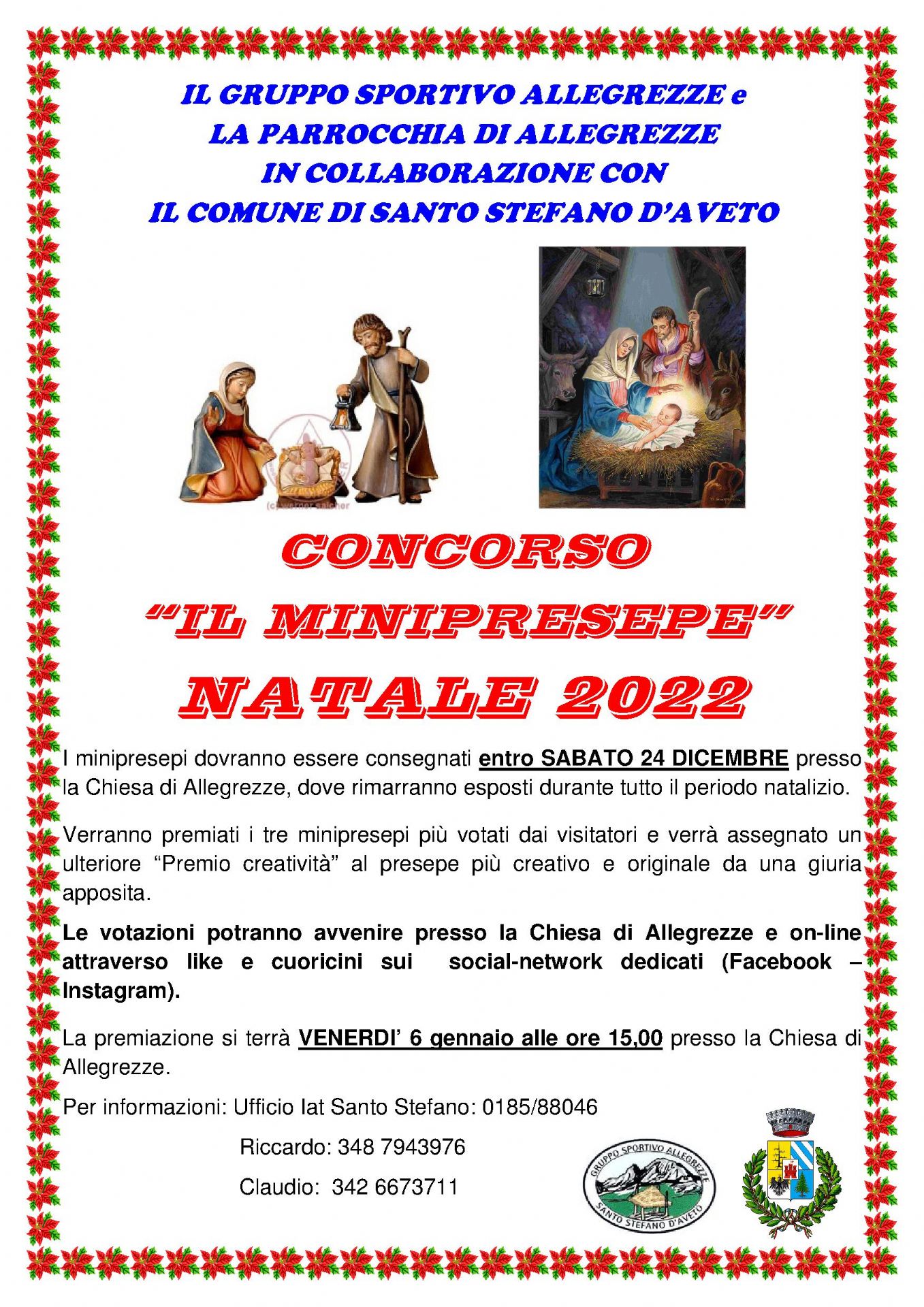 La premiazione si terrà VENERDI’ 6 gennaio alle ore 15,00 presso la Chiesa di Allegrezze.