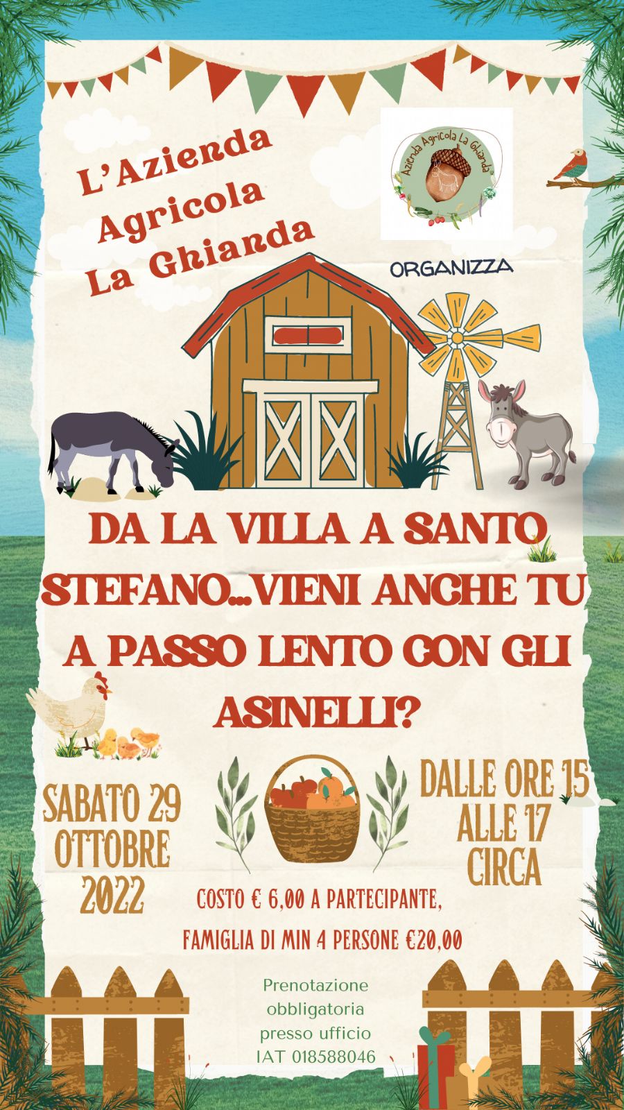 L'azienda Agricola La Ghianda organizza un pomeriggio con gli asinelli, sabato 29 ottobre dalle ore 15 alle ore 17.