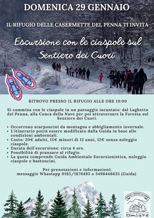 Il Rifugio Casermette del Penna ti invita alla Ciaspolata di domenica lungo il sentiero dei cuori 💚