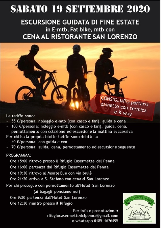 Escursione guidata di fine estate in E-mtb, Fat bike, mtb con Cena al Ristorante San Lorenzo