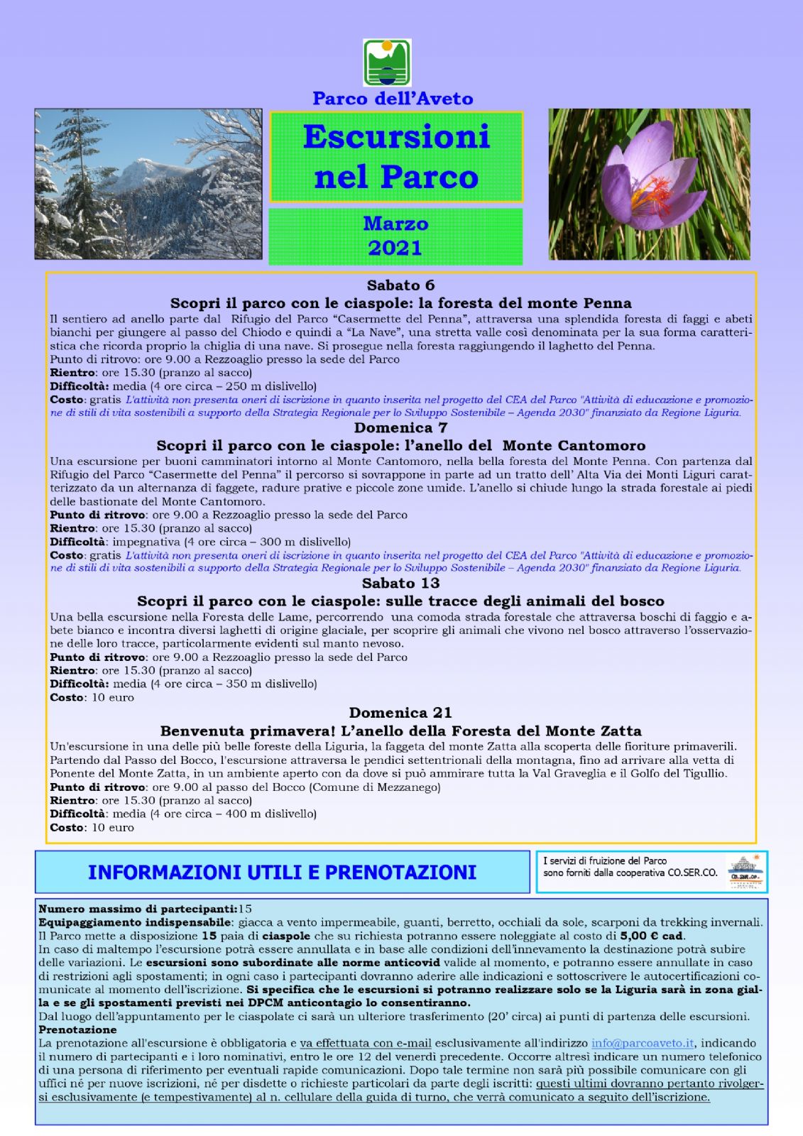 Si specifica che le escursioni si potranno realizzare solo se la Liguria sarà in zona gialla e se gli spostamenti previsti nei DPCM anticontagio lo consentiranno.