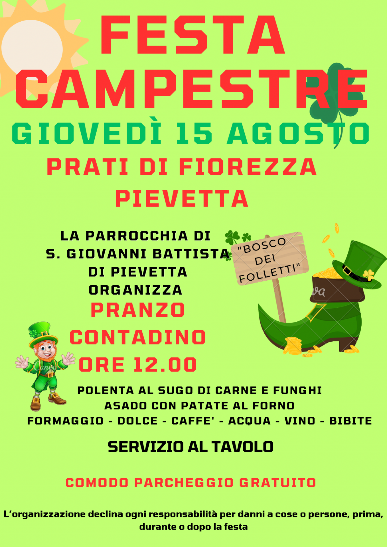 la Parrocchia di San Giovanni Battista di Pievetta Organizza Il pranzo Contadino dalle ore 12.00.
