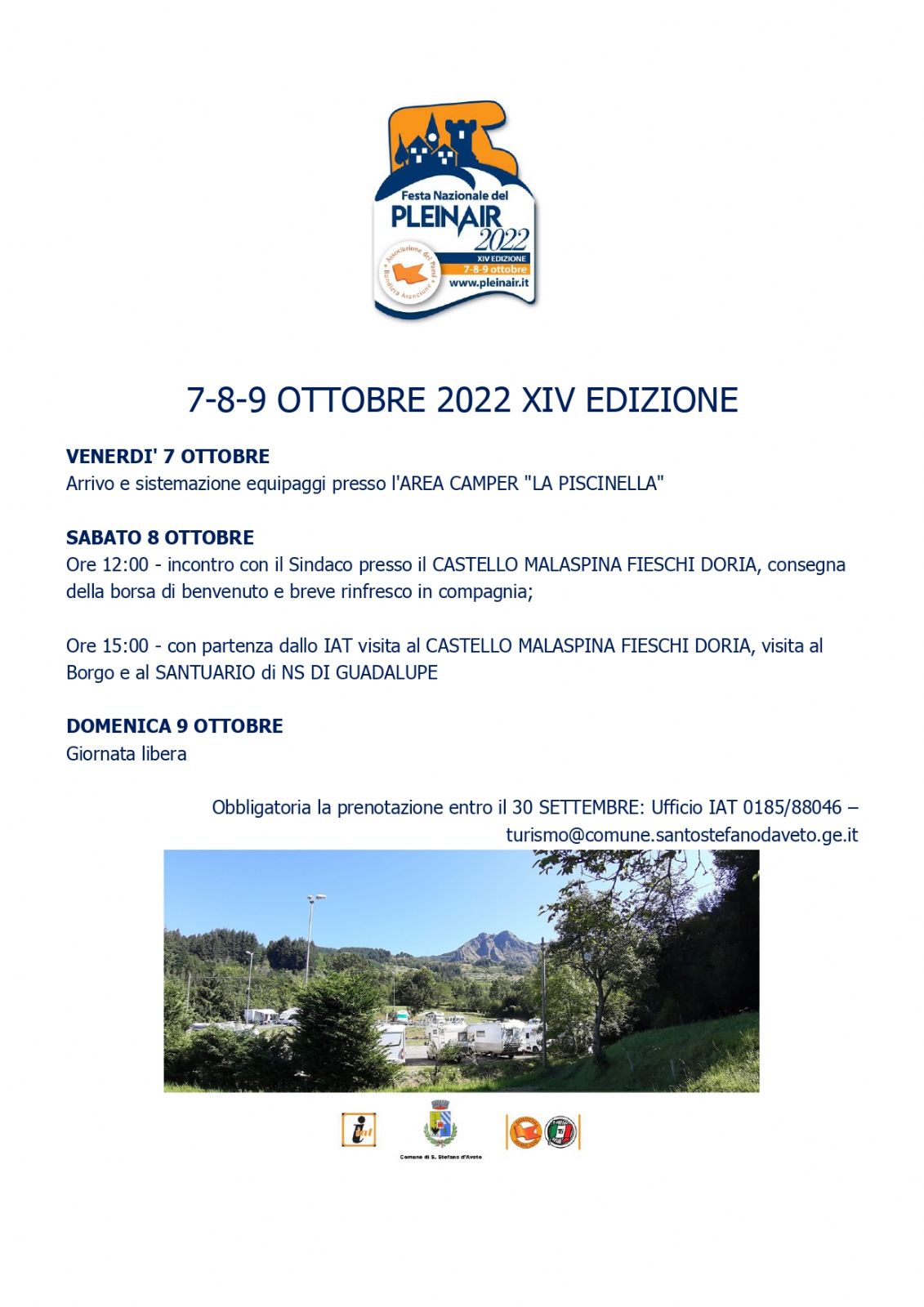 Obbligatoria la prenotazione entro il 30 SETTEMBRE: Ufficio IAT 0185/88046 – turismo@comune.santostefanodaveto.ge.it