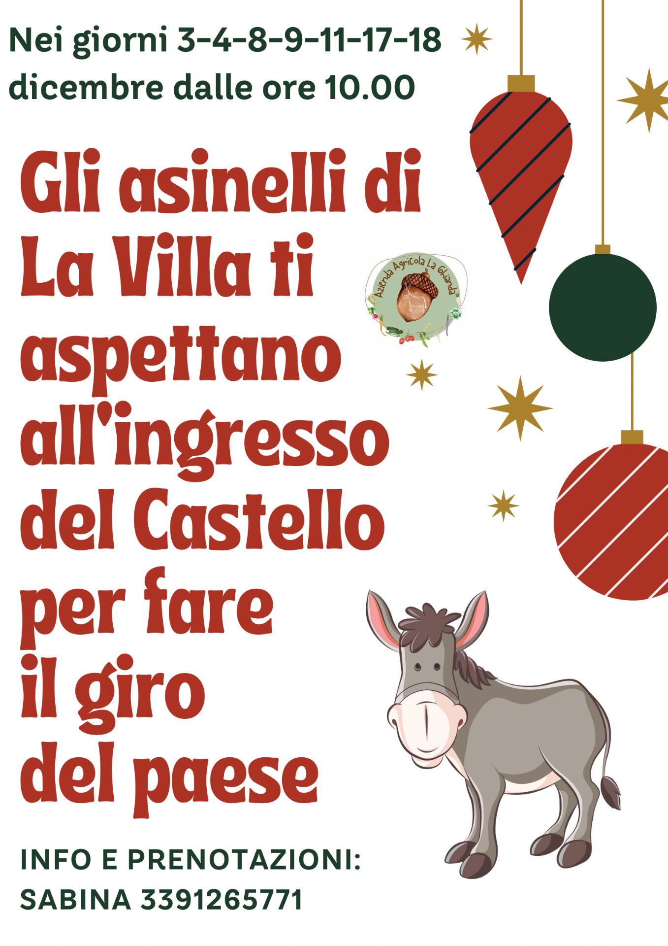 Gli asinelli di La Villa ti aspettano all'ingresso del Castello per fare il giro del paese