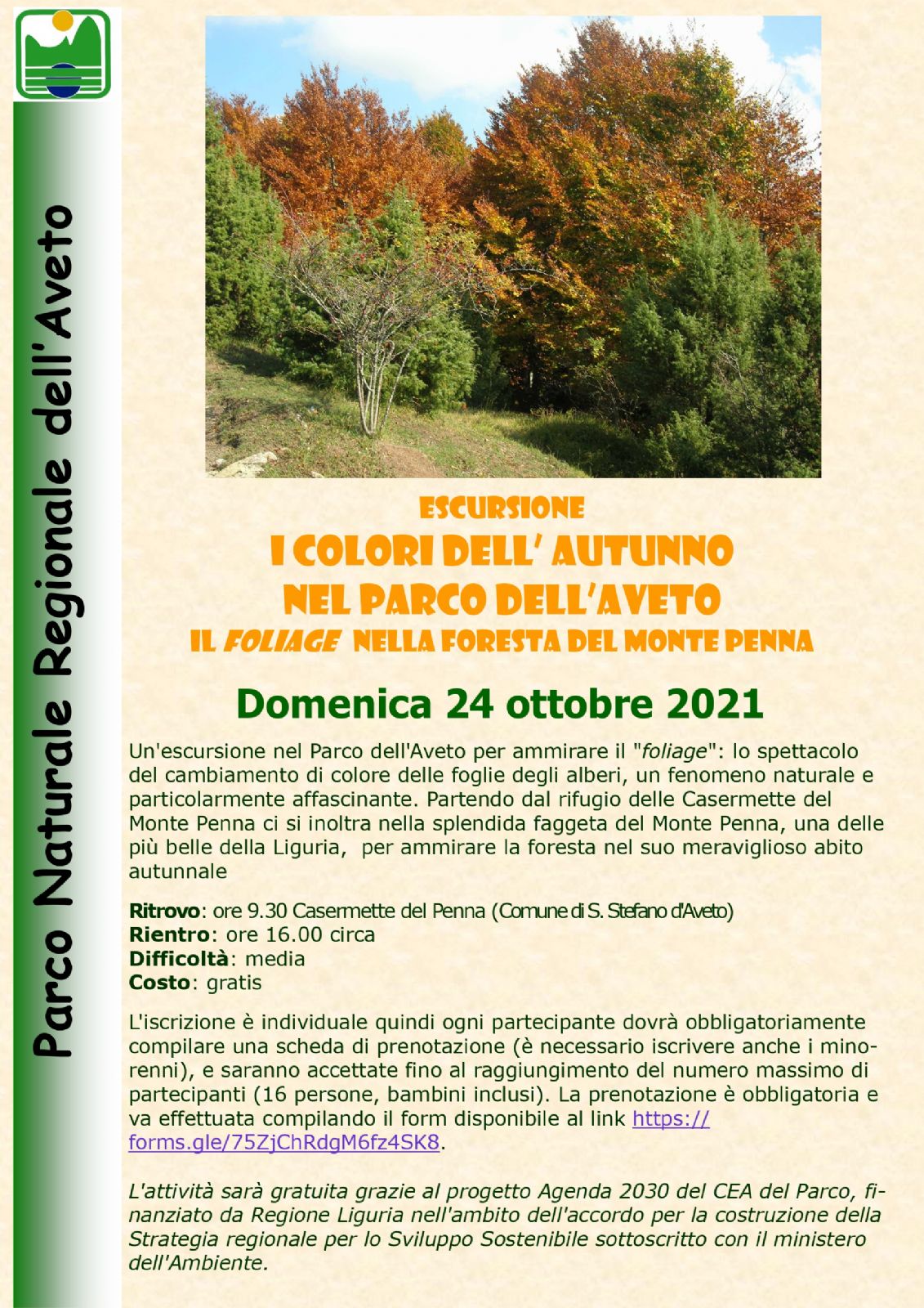 Un'escursione nel Parco dell'Aveto per ammirare il "foliage": lo spettacolo del cambiamento di colore delle foglie degli alberi, un fenomeno naturale e particolarmente affascinante. L'escursione si svolgerà nella bella foresta del Monte Penna, in alta Val d'Aveto.