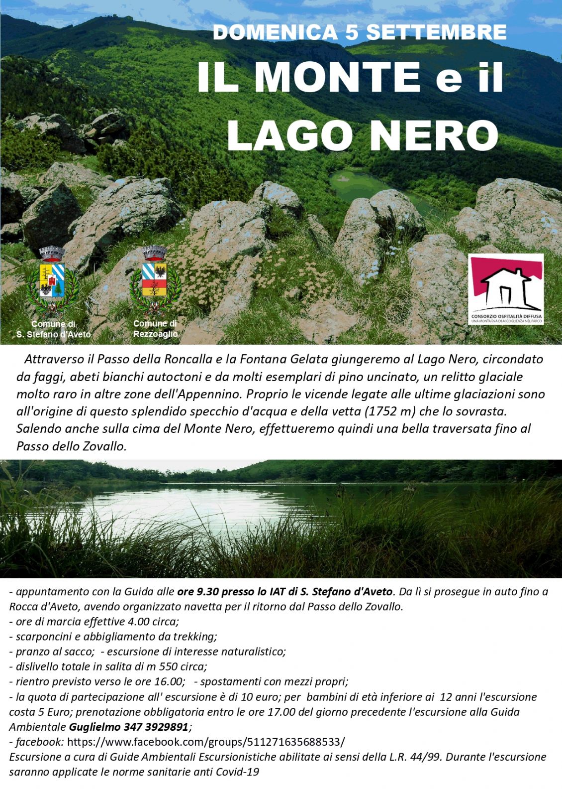 - appuntamento con la Guida alle ore 9.30 presso lo IAT di S. Stefano d'Aveto. Da lì si prosegue in auto fino a Rocca d'Aveto, avendo organizzato navetta per il ritorno dal Passo dello Zovallo.