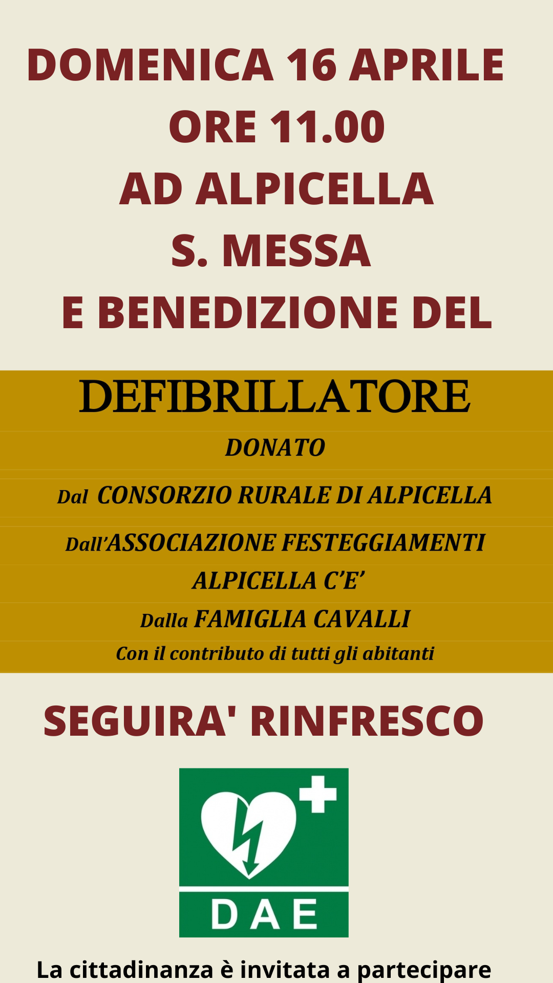 DOMENICA 16 APRILE ORE 11.00 AD ALPICELLA S. MESSA E BENEDIZIONE DEL DAE.