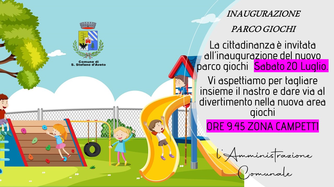 La cittadinanza è invitata all'inaugurazione del nuovo parco giochi sabato 20 luglio. Vi aspettiamo per tagliare il nastro e dare via al divertimento nella nuova area giochi. Ore 9.45 Zona Campetti