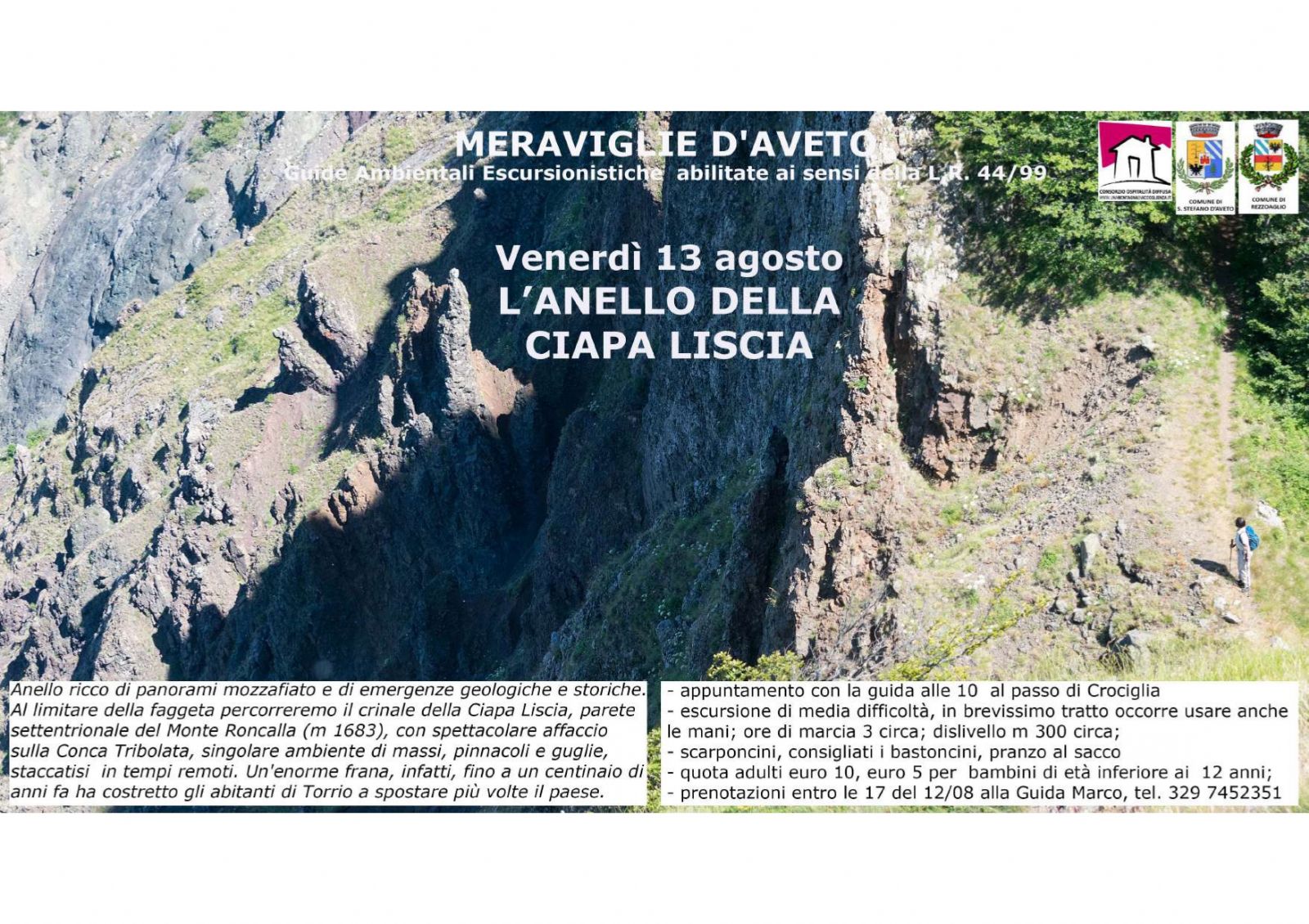 - prenotazioni entro le 17 del 12/08 alla Guida Marco, tel. 329 7452351