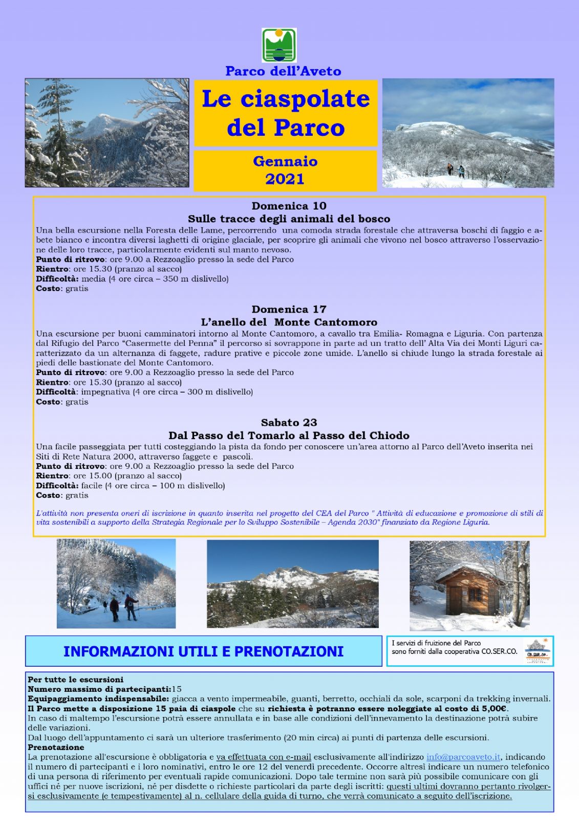In caso di maltempo l’escursione potrà essere annullata e in base alle condizioni dell’innevamento la destinazione potrà subire delle variazioni.