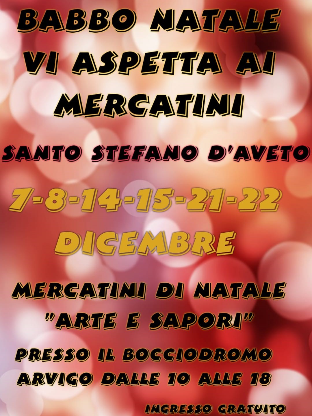 7-8-14-15-21-22 Dicembre Vi Aspettiamo In Un'atmosfera Natalizia Ai Mercatini Di Natale 'Arte E Sapori'