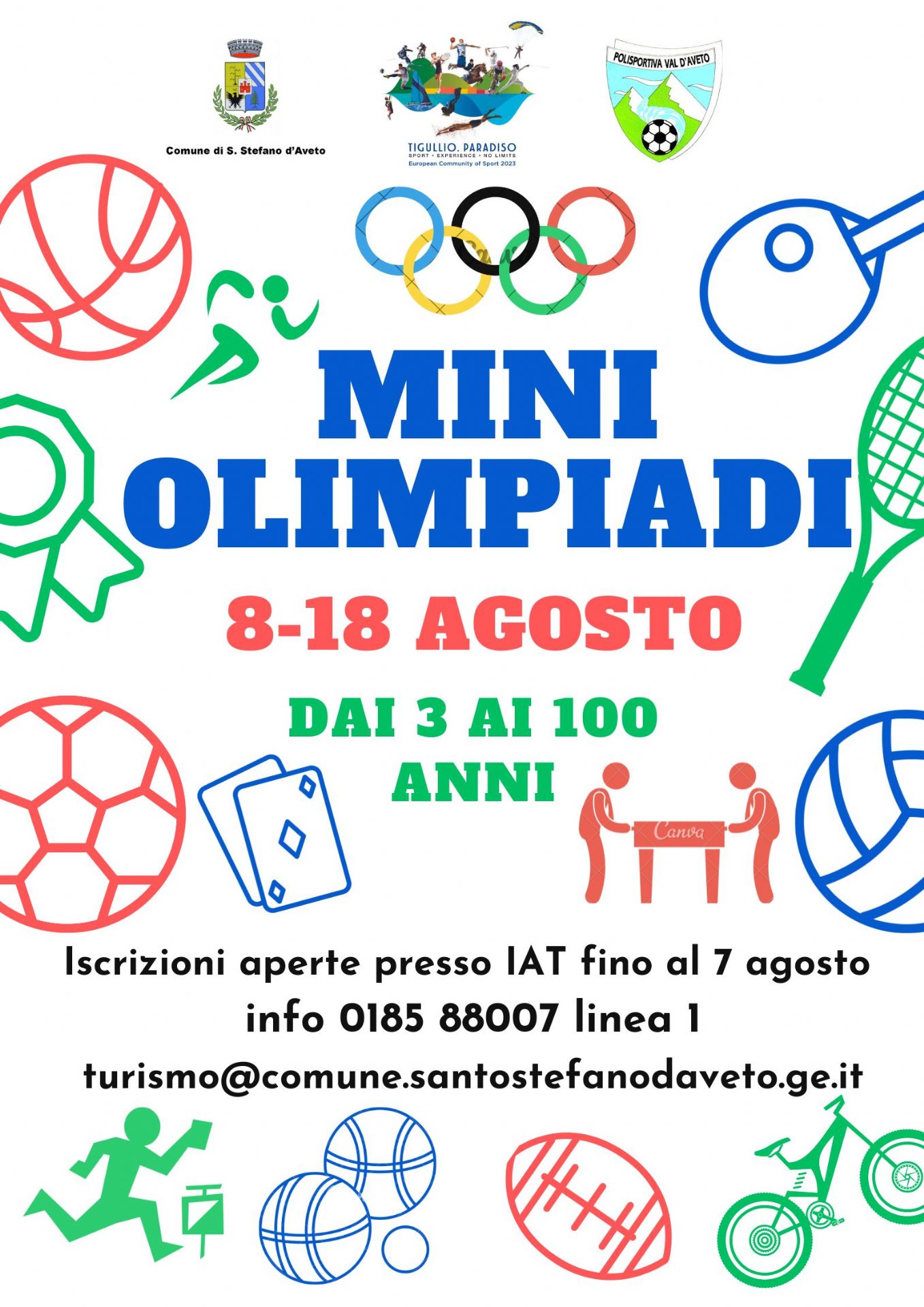Iscrizioni presso l'Ufficio IAT oppure via email a turismo@comune.santostefanodaveto.ge.it, fa fede la ricezione della conferma della email entro il 7 agosto.