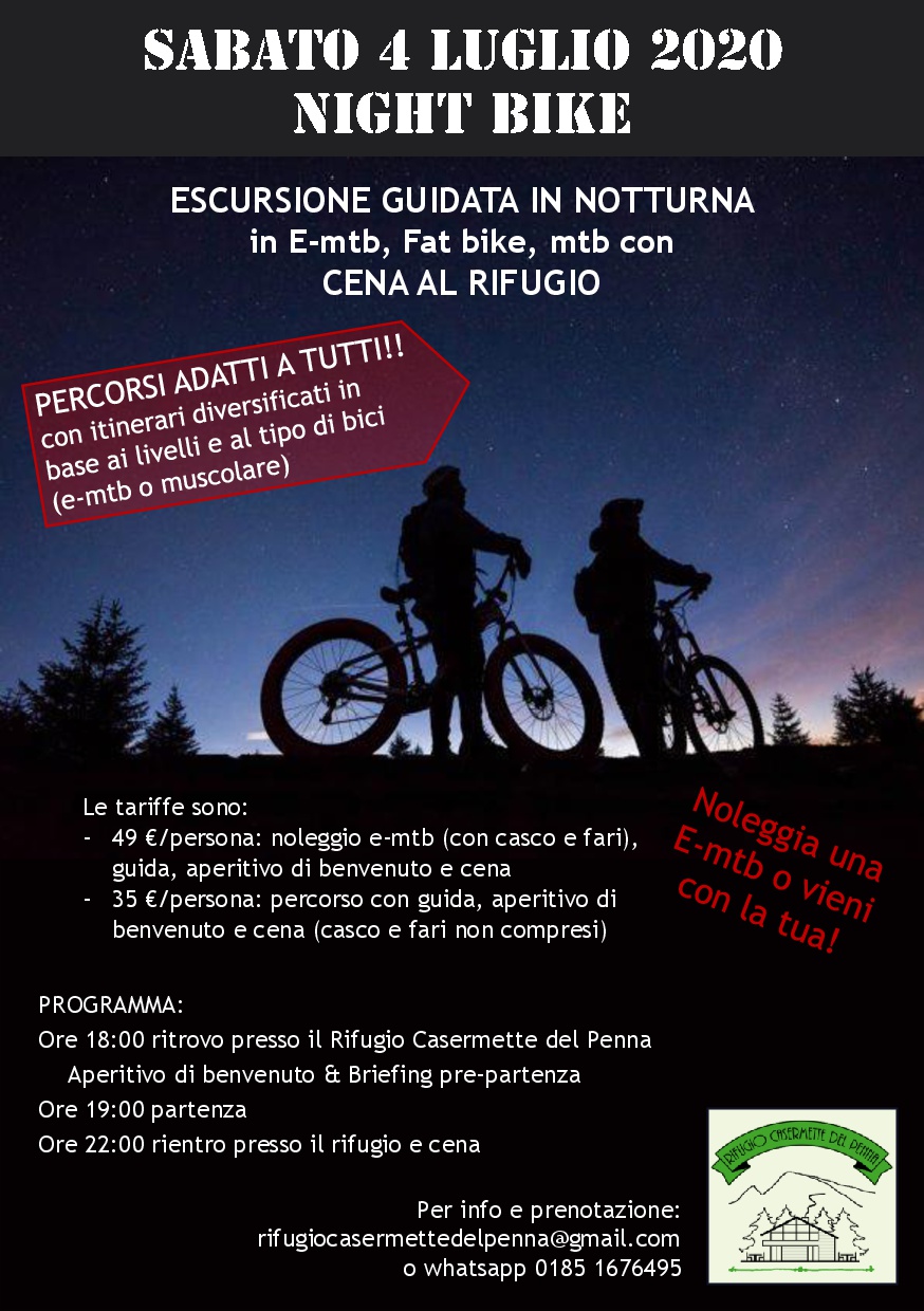 Escursione guidata in notturna per MTB. e-MTB, fat bike dal Rifugio Casermette del Penna