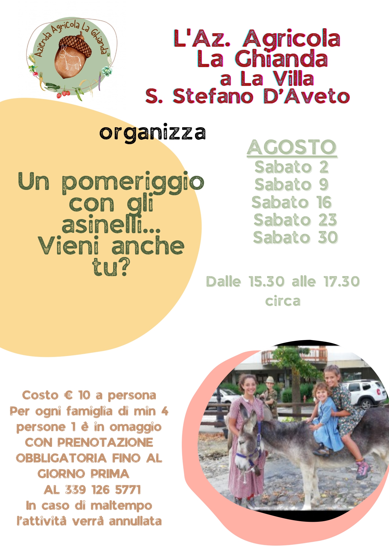 L'azienda Agricola La Ghianda organizza dei pomeriggi con gli asinelli.