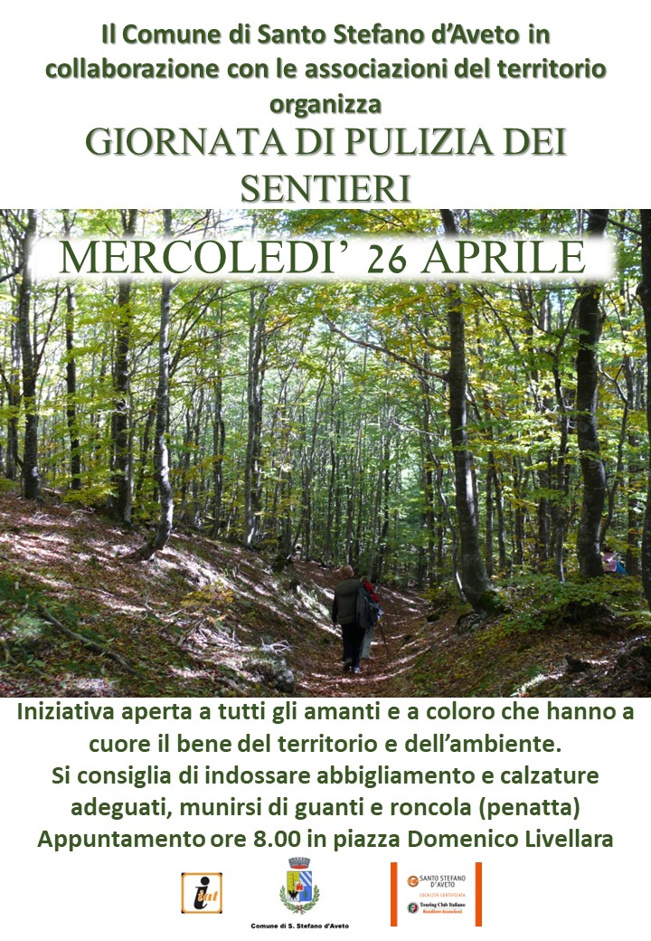 Il Comune di Santo Stefano d’Aveto in collaborazione con le associazioni del territorio organizza la GIORNATA DI PULIZIA DEI SENTIERI