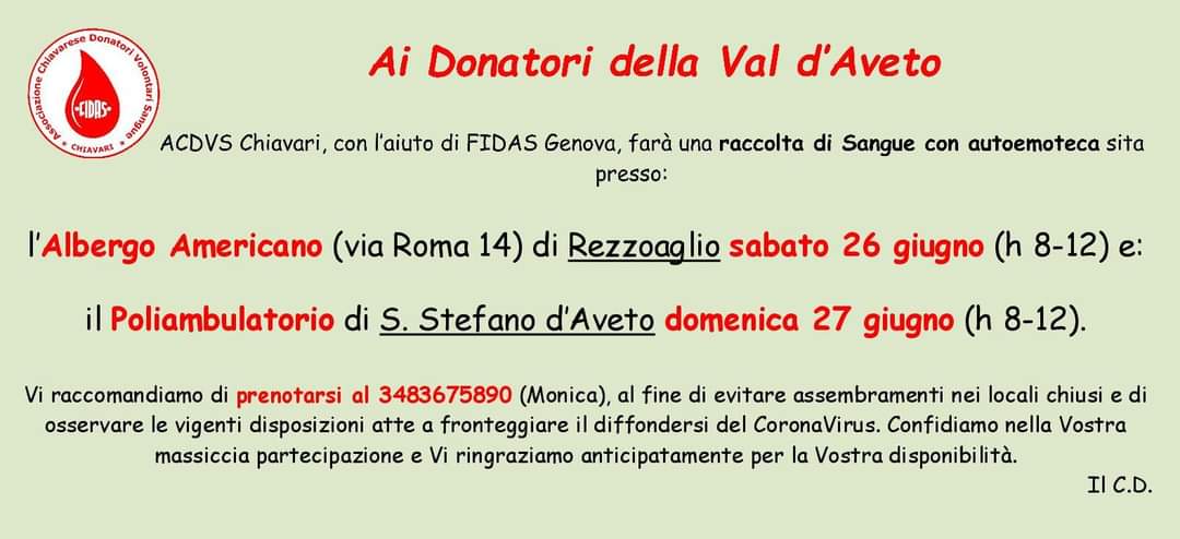 Dalle ore 8 alle ore 12 ACDVS e Fidas faranno una raccolta di sangue con emoteca.