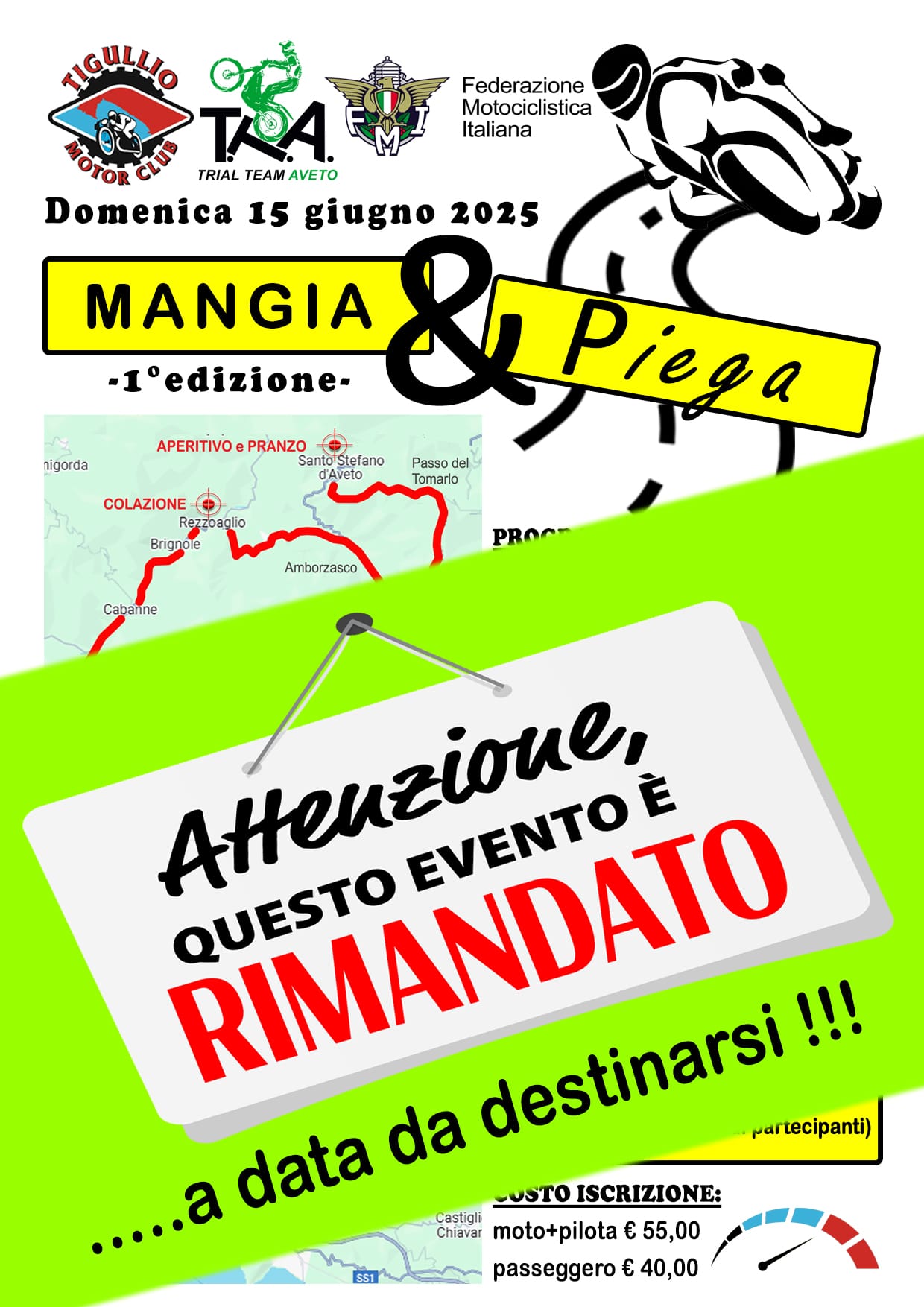 Il Trial Team Avetro in collaborazione con il Motor Club Tigullio presentano la 1^ edizione 2025 di Mangia & Piega, un appuntamento che unisce gusto, tradizione e divertimento all’aria aperta!