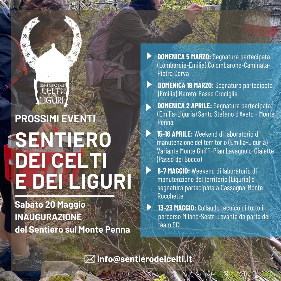 Aggiornate le agende e preparate gli zaini perché la prima segnatura sarà il 5 marzo!! E sì...avete letto bene, ci saranno tante occasioni per vedersi durante gli eventi sul sentiero, ma poi finalmente il 20 MAGGIO festeggeremo tutti insieme con l'INAUGURAZIONE UFFICIALE del #SentierodeiCeltiedeiLiguri sul nostro amatissimo Monte Penna ⛰🎊 #SaveTheDate