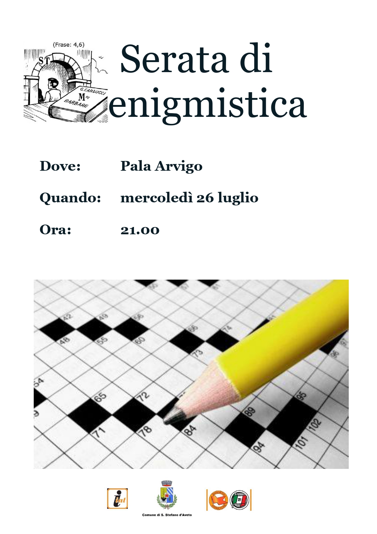 Grandi e piccini potranno divertirsi mercoledì 26 luglio presso il Pala Arvigo con una serata di enigmistica.