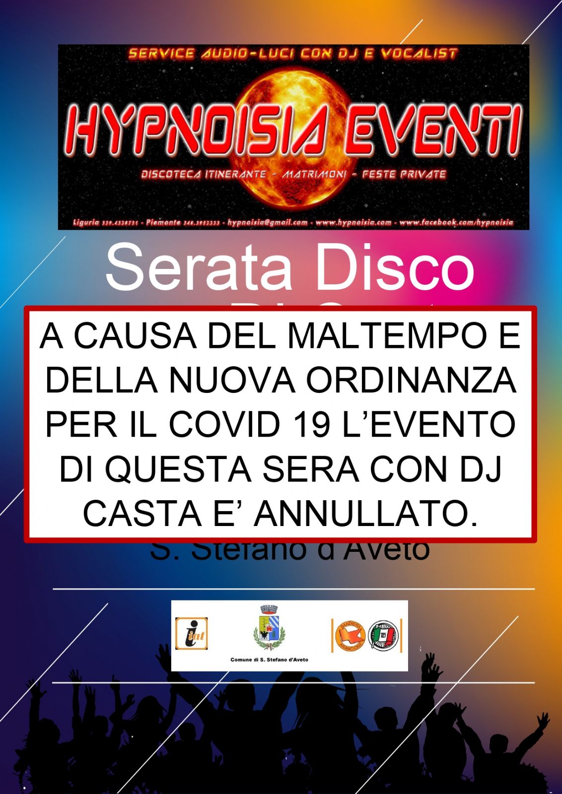 A CAUSA DEL MALTEMPO E DELLA NUOVA ORDINANZA PER IL COVID 19 L’EVENTO DI QUESTA SERA CON DJ CASTA E’ ANNULLATO.