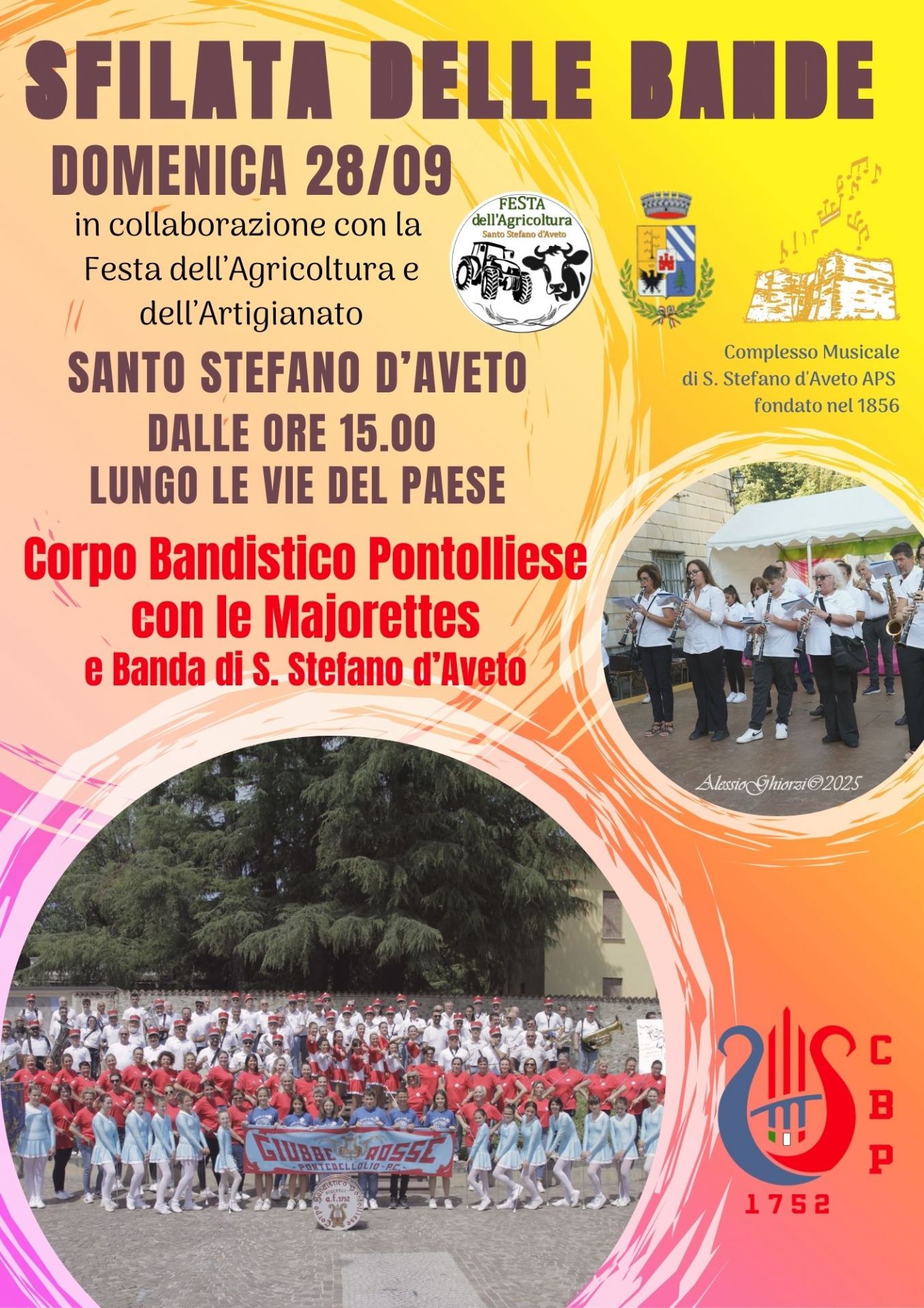 Domenica 28 settembre, a partire dalle ore 15.00, lungo le vie di Santo Stefano d’Aveto, si terrà la Sfilata delle Bande, in collaborazione con la Festa dell’Agricoltura e dell’Artigianato.