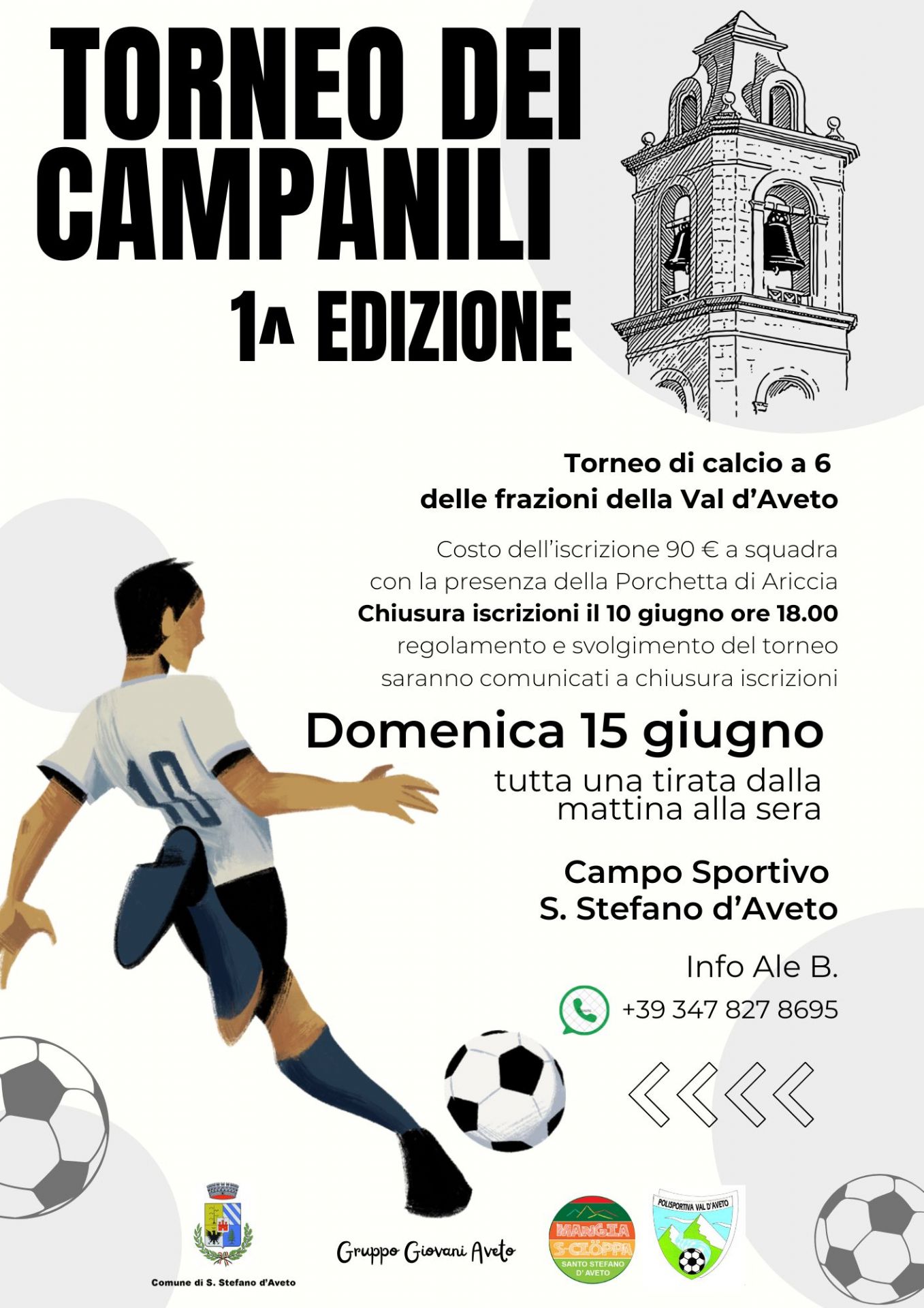 Il Gruppo Giovani Aveto e la Polisportiva Val d'Aveto sono lieti di presentare la prima edizione del "Torneo dei Campanili", un torneo di calcio a 6 che vedrà sfidarsi le frazioni della Val d’Aveto in un’intera giornata di sport, divertimento e comunità.