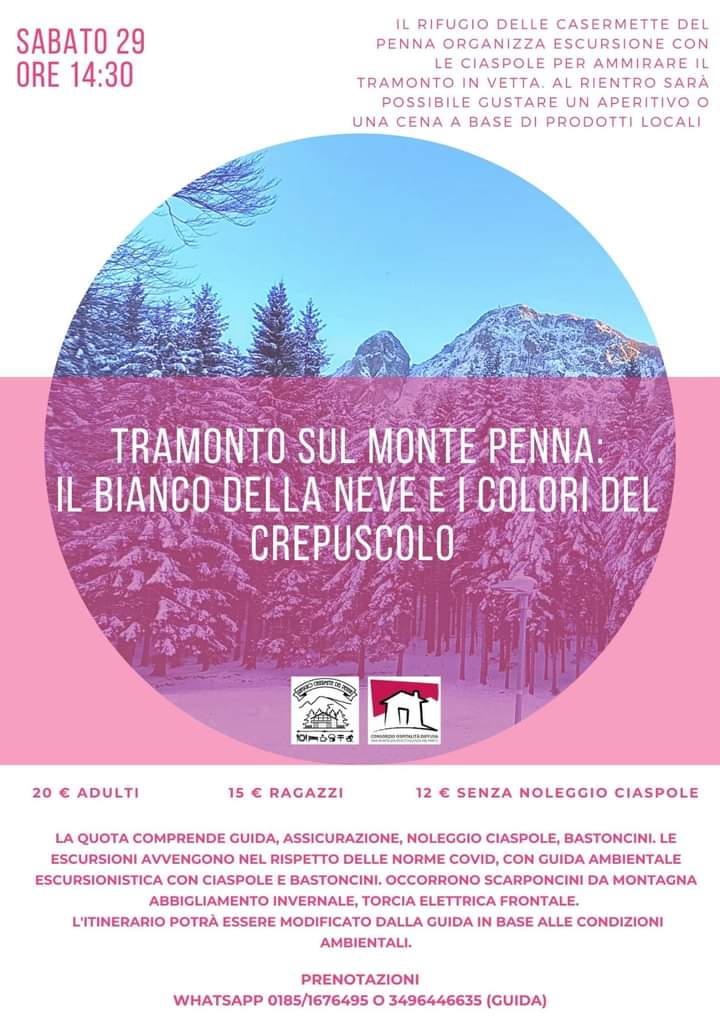 Escursione con le ciaspole per ammirare tramonto in vetta al Monte Penna.