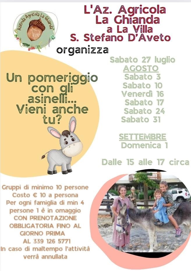 La fattoria didattica e azienda Agricola la Ghianda in località La Villa organizza ........ un pomeriggio con gli asinelli.
