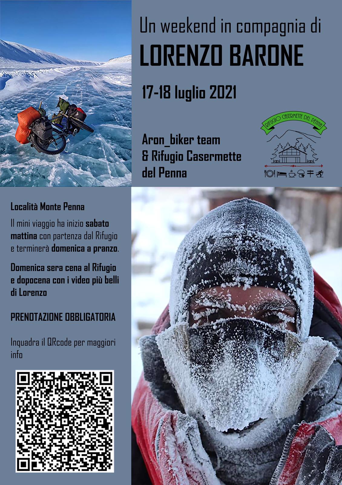 Vieni a conoscere personalmente Lorenzo Barone, un ragazzo che viaggia in bicicletta per il mondo alla ricerca di luoghi remoti ed ostili. Fra le tante avventure ha attraversato la Siberia in inverno per mesi in autosufficenza con temperature estreme. Avrai la possibilità di affrontare un'escursione in sella alla tua bicicletta (consigliata gravel,ci sarà anche dell'off road) ,mangiare on the road e dormire in tenda , tutto questo in compagnia di Lorenzo. Sarà un "viaggio" di piacere per stare insieme e carpire i trucchi del mestiere di questo grande interprete del cicloviaggio. L'escursione (costo 19 euro) inizierà sabato mattina dalle Casermette Mt Penna (attorno alle 10.00) e attraversando il Parco dell'Aveto terminerà domenica a pranzo con un percorso ad anello. Tutti i partecipanti dovranno essere autosufficienti sia per l'alimentazione che per il dormire. Dopo l'escursione ,nel pomeriggio, Lorenzo sarà a disposizione per tutti gli appassionati che vorranno porgergli domande o chiedere consigli. La sera si potrà partecipare alla cena ,consumata la quale, verranno riprodotti i suoi video più belli. Si potrà partecipare a tutto il week end o fare la cena ,oppure ancor più semplicemente venire a farsi un selfie nel pomeriggio.