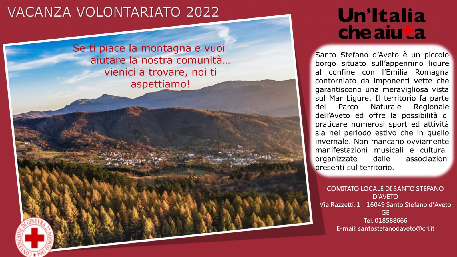 Il comitato locale della C.R.I. propone per il secondo anno consecutivo la vacanza volontariato, rivolta ai volontari di Croce rossa di tutta Italia.