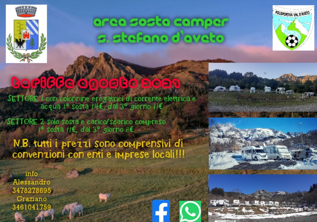 Nel cuore della Val d’Aveto, a cinque minuti a piedi dal centro di Santo Stefano d’Aveto, un’area sosta camper attrezzata in area sterrata ed accessibile alle persone con disabilità.