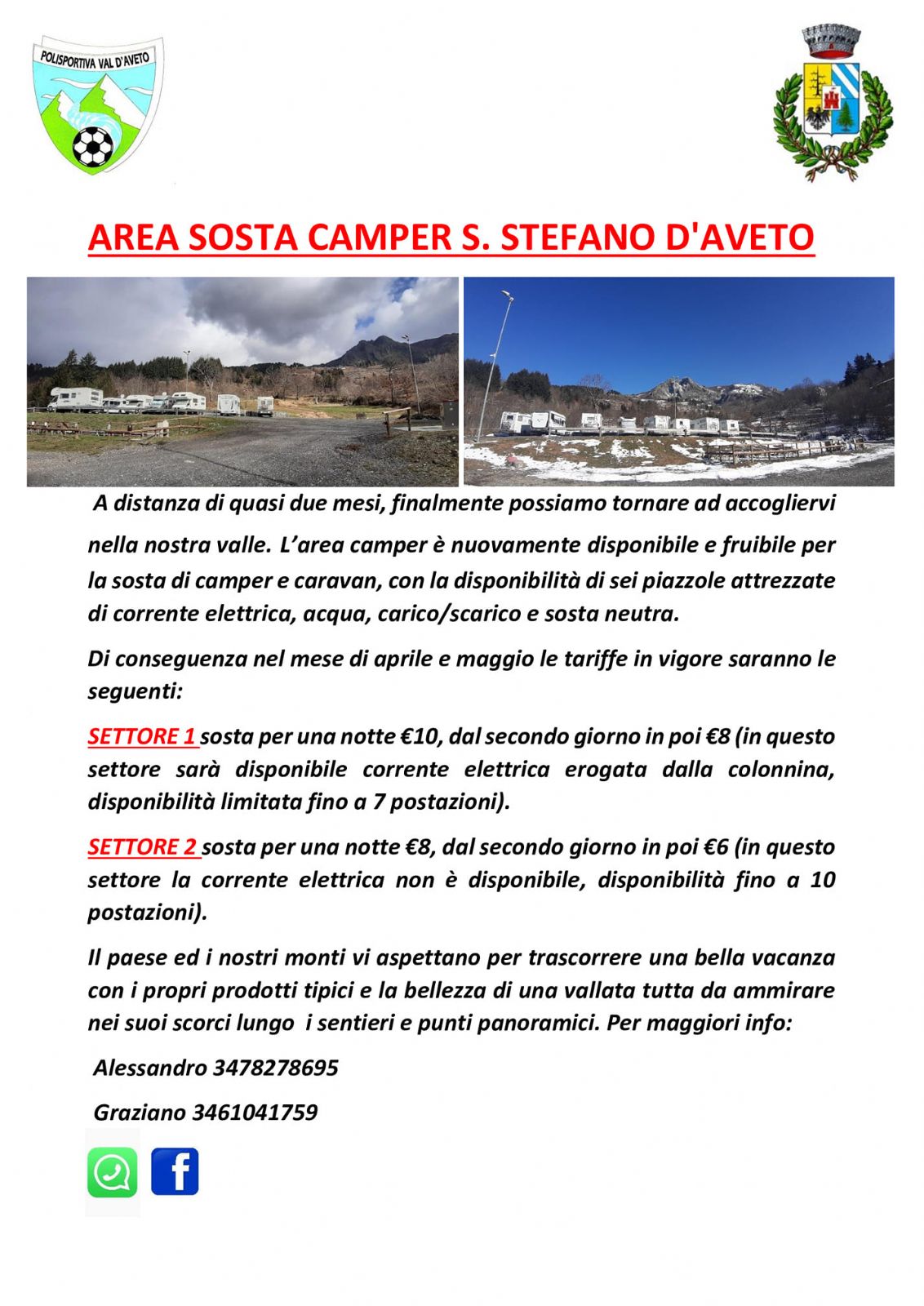 Nuove tariffe area sosta camper a Santo Stefano d'Aveto per i mesi di aprile e maggio