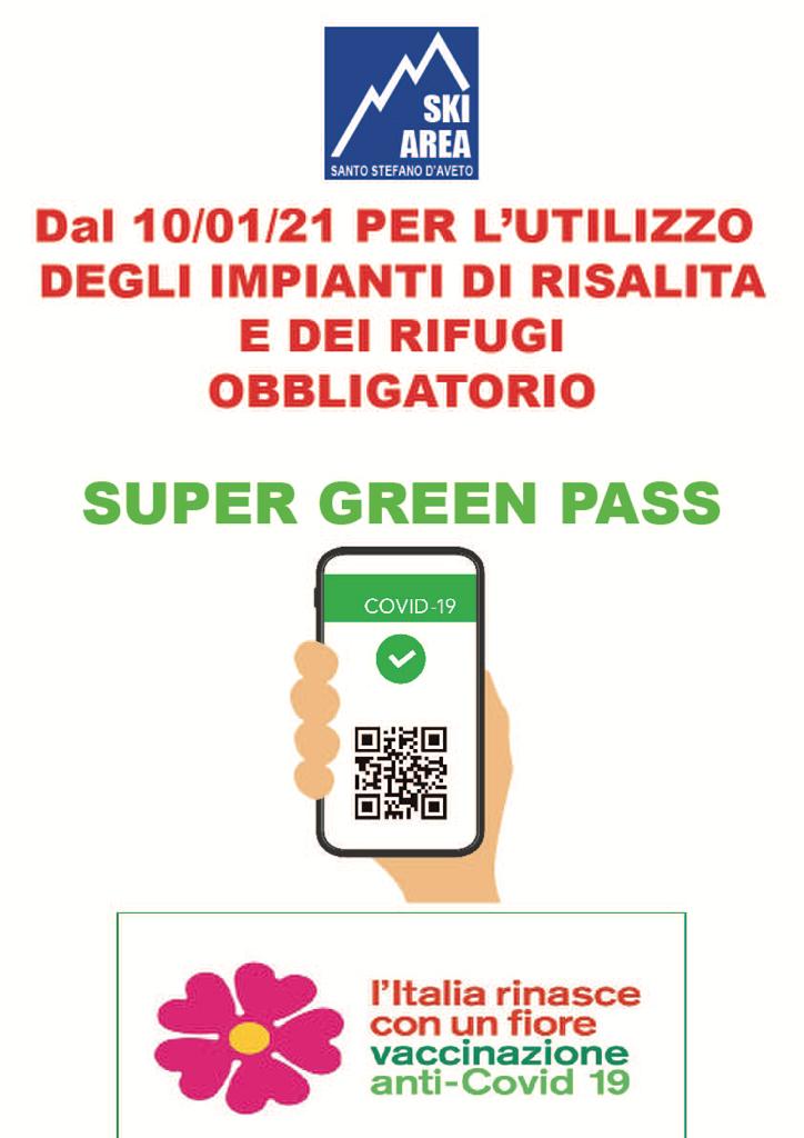 Dal 10 Gennaio 2022 per l'ultilizzo di impianti di risalita ed ingresso nei rifugi è richiesto il SUPER GREEN PASS