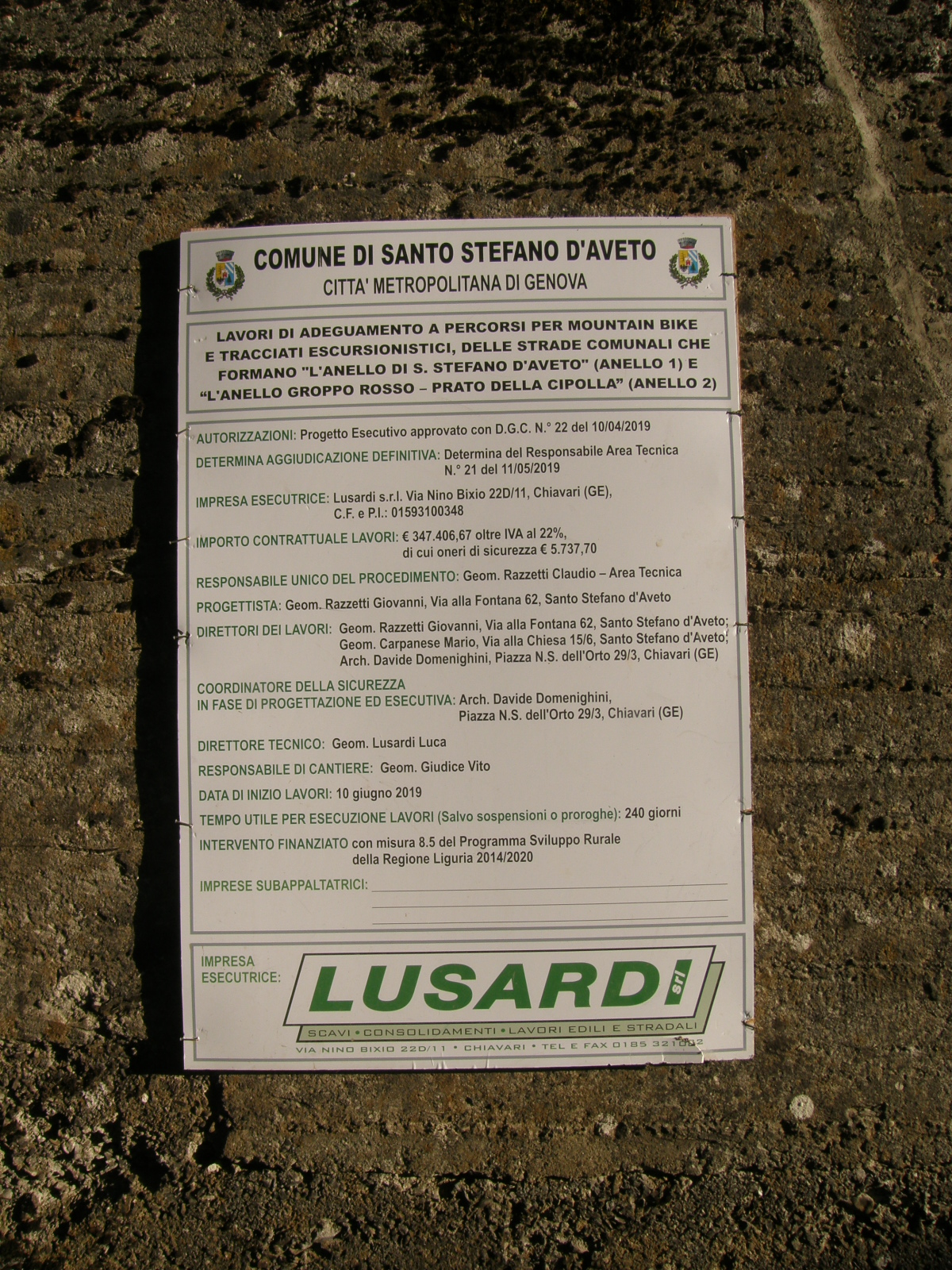 LAVORI DI ADEGUAMENTO A PERCORSI PER MOUNTAIN BIKE E TRACCIATI ESCURSIONISTICI, DELLE STRADE COMUNALI CHE FORMANO "L'ANELLO DI S. STEFANO D'AVETO" (ANELLO 1) E “L’ANELLO GROPPO ROSSO – PRATO DELLA CIPOLLA” (ANELLO 2)