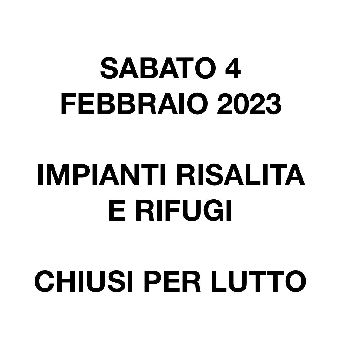 Impianti e Rifugi chiusi per lutto