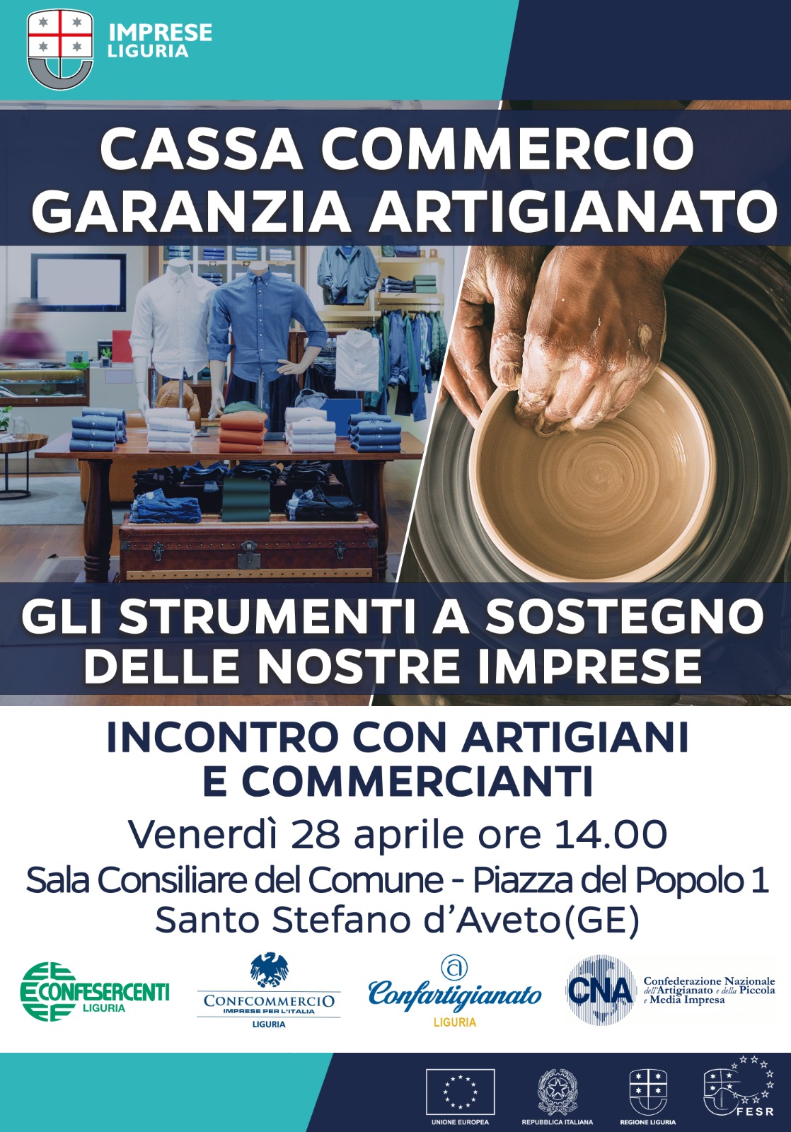 Incontro dedicato ad artigiani e commercianti della zona per illustrare i vantaggi delle misure Cassa Commercio Liguria e Garanzia Artigianato Liguria.