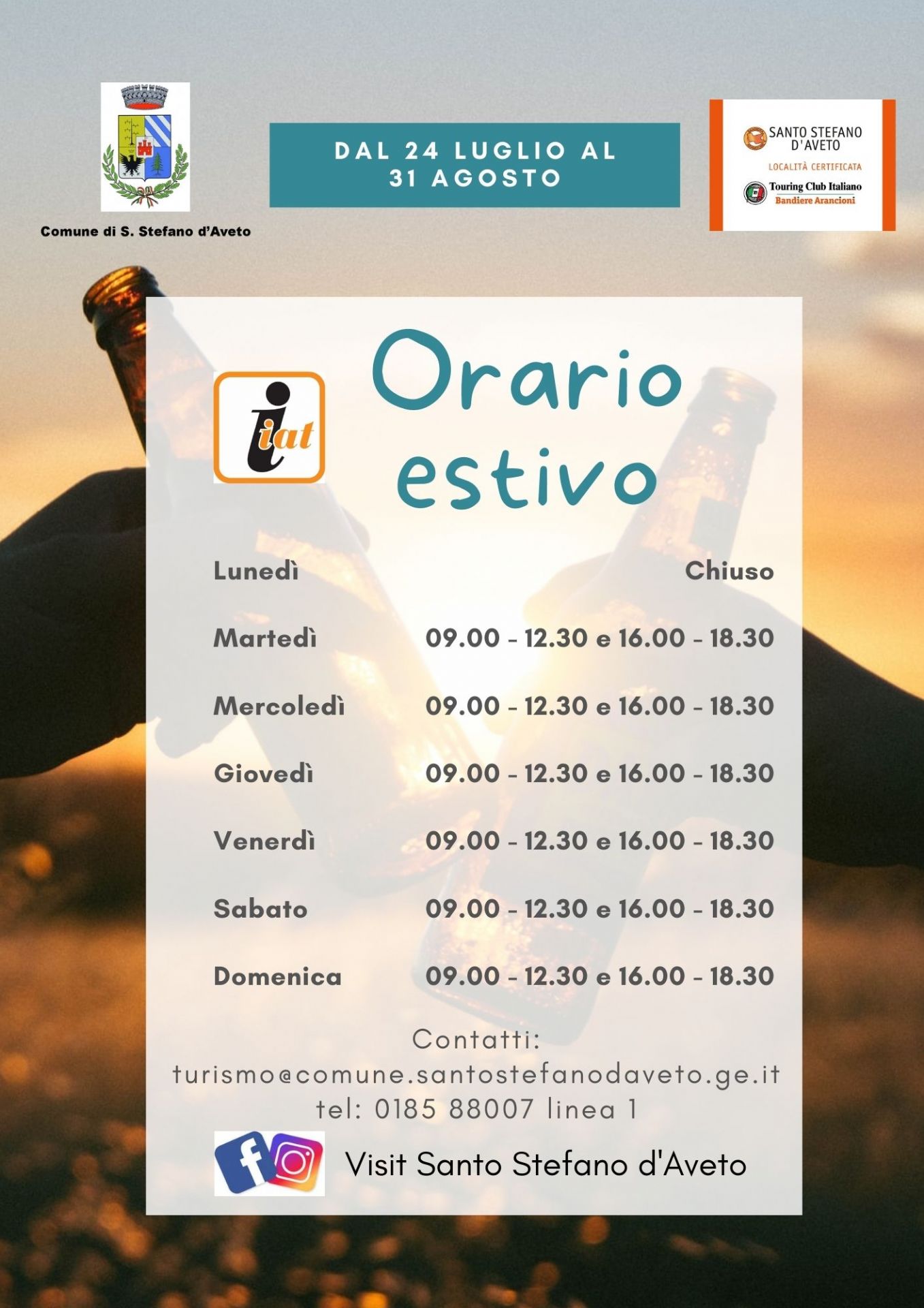 Dal 24 luglio al 31 agosto l'ufficio turistico cambia l'orario al fine di garantire un maggior servizio per l'utenza: